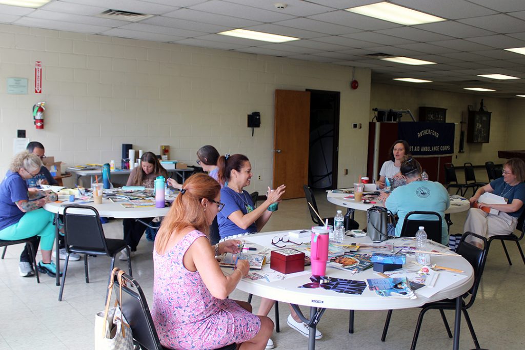 New and existing Rutherford Arts Council members met at the Rutherford Ambulance Corps to create up-cycled keepsake boxes out of single use product packaging and magazine clippings. These boxes avoided their fate as trash and became one of a kind works of art!