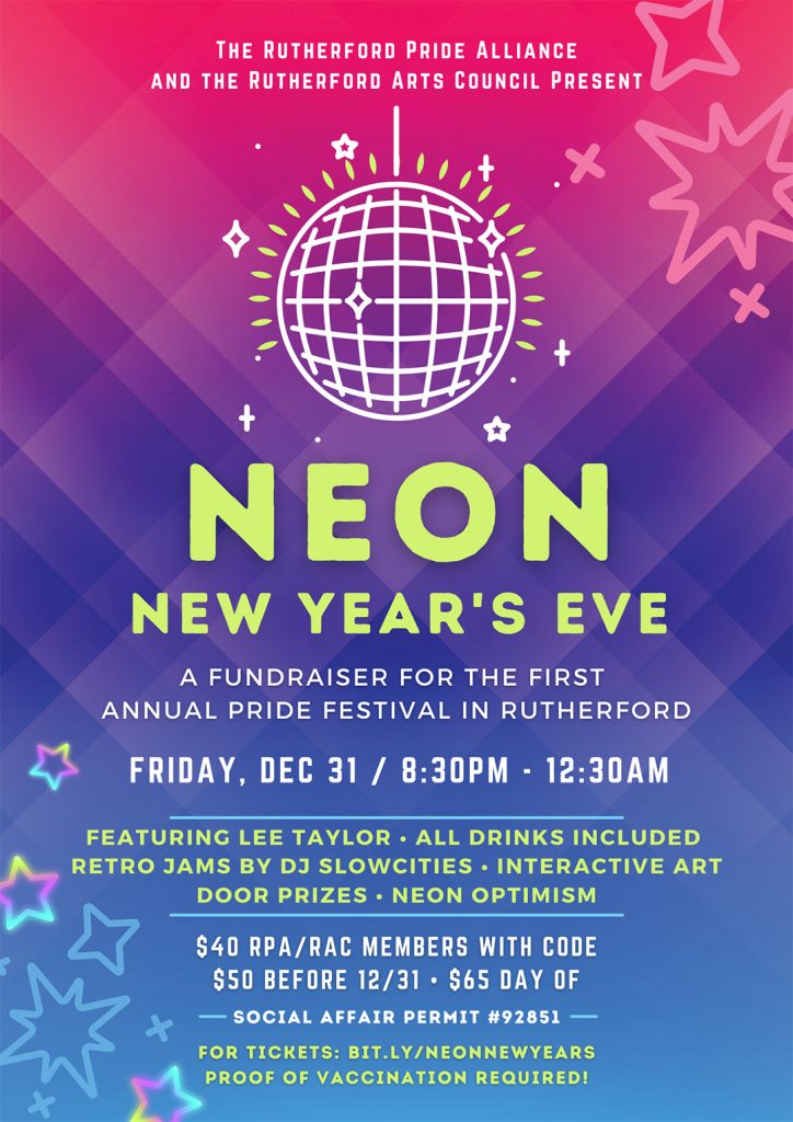 Despite some Covid related delays, our Neon Ball was held in February. The first major fundraiser for PRIDE and Art Fest 2022, the Neon Ball was a HUGE success for the Rutherford Arts Council! A hundred people came out to dance, celebrate, and take part in some interactive art stations.