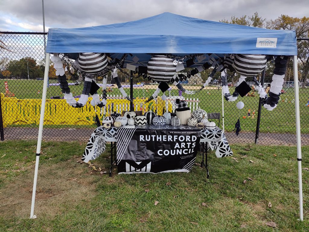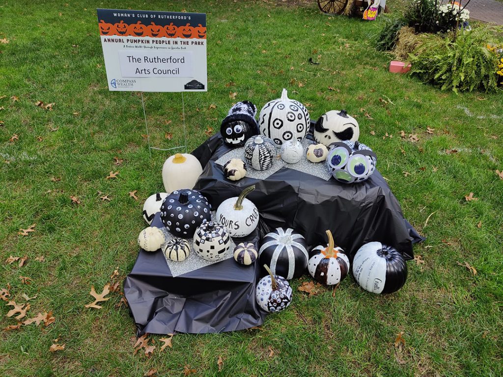 The Rutherford Arts Council once again participated in the Woman’s Club of Rutherford Pumpkin People in the Park. This year, we went with the theme “Black and White”, and residents donated an amazing variety of pumpkins. The display was later used to hand out candy at our booth at the borough’s Halloween festivities.