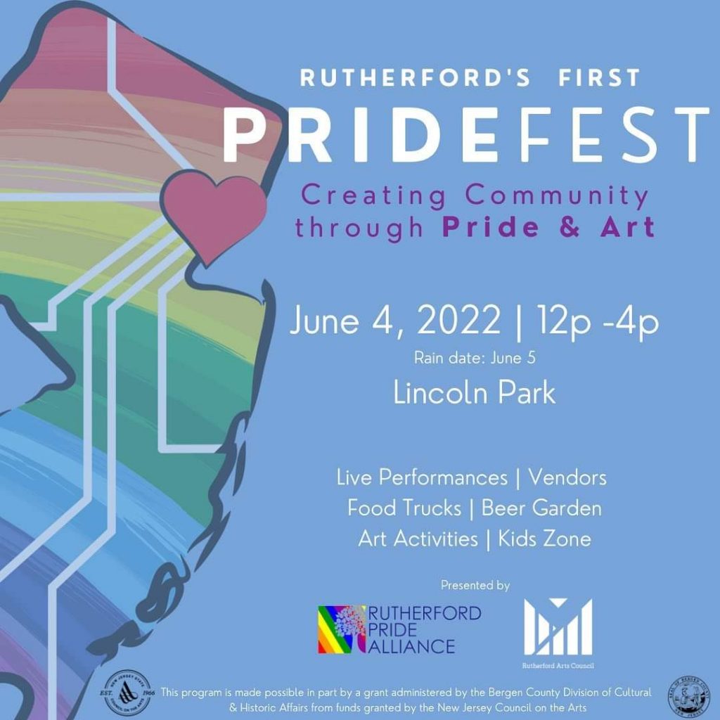 PRIDEFest Come one, come all to Rutherford’s FIRST Pride and art festival! There will be food, vendors, TONS of kids activities, a beer garden, live performances and more! This festival is free to all, and begins right after the flag raising.