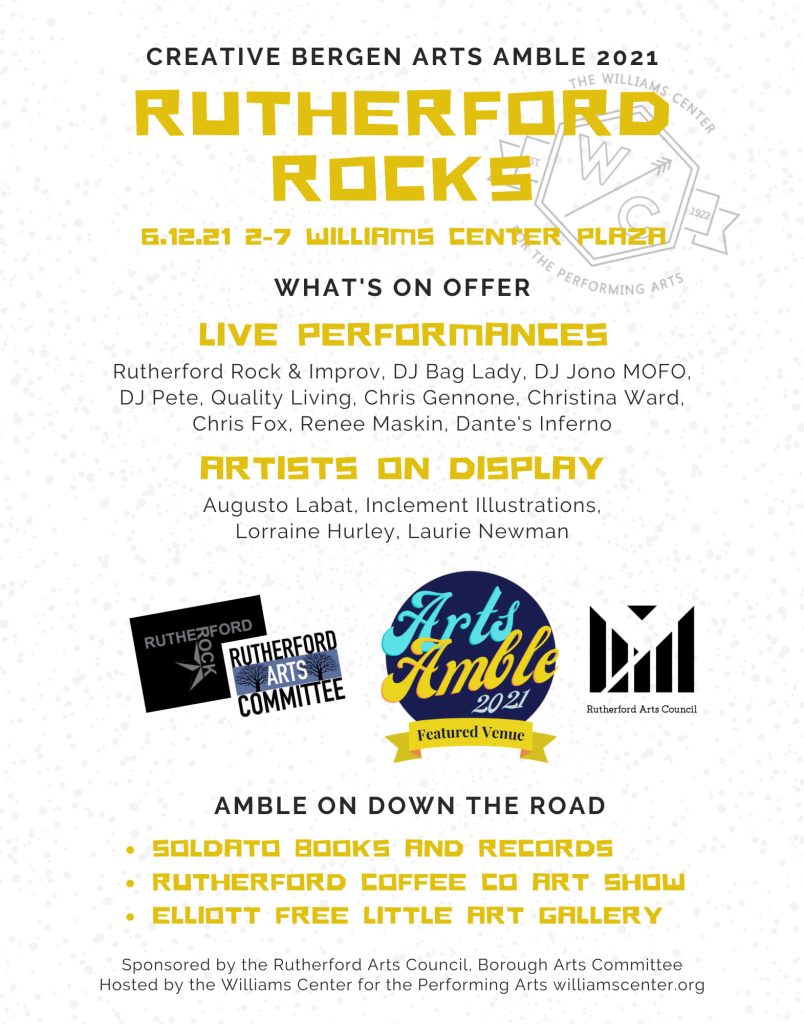 In June, hundreds of people came out to our Rutherford Rocks Art and Music Festival. Musicians performed on Williams Center Plaza, while artists had tables displaying and selling their work in the Williams Center lobby. An open air terrace beergarden with dj’s and dancing rounded out the event. The RAC auctioned off a beautiful painting by Otsuga Tabal, raising several hundred dollars for the musicians who performed. This was our biggest event to date!
